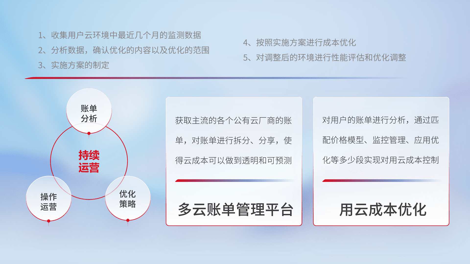 监控业务系统资源开销,,对资源的消耗精确计量,,实现费用的透明化管理,,,不断提升资源使用率,,调整资源购买方式,,,,降低资源费用成本,,用云成本可预测、、、、用云费用可优化,,云资源配额有据可依。。。